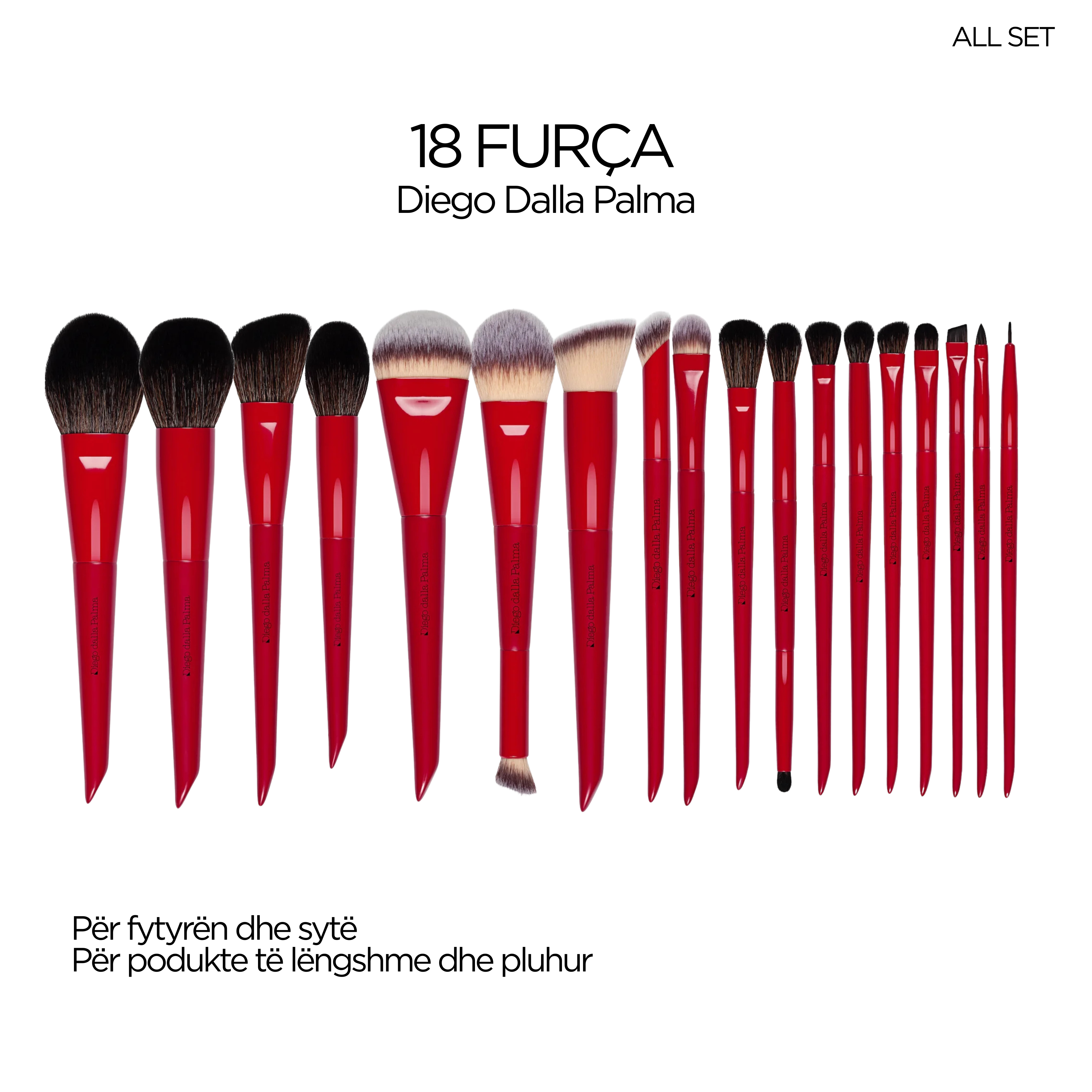 Furçat e reja të kuqe Diego Dalla Palma janë seti ideal për këdo që kërkon performancë profesionale dhe estetikë në çdo detaj. Seti përmban 18 furça gjithsej: 9 për fytyrën dhe 9 për sytë, të përshtatshme si për produkte likuide ashtu edhe për ato në formë pluhuri, duke garantuar aplikim të njëtrajtshëm, të kontrolluar dhe pa mbetje. Fijet e buta dhe rezistente sigurojnë shpërndarje perfekte të produktit, ndërsa dizajni ergonomik i dorezës ofron rehati dhe precizion maksimal në çdo përdorim. Një zgjedhje ideale si për makeup artistë profesionistë, ashtu edhe për ata që duan rezultate të përsosura në rutinën e përditshme, ky koleksion vjen si set i plotë, duke ju ofruar gjithçka që ju nevojitet për një grim të kuruar dhe profesional nga fillimi deri në fund.